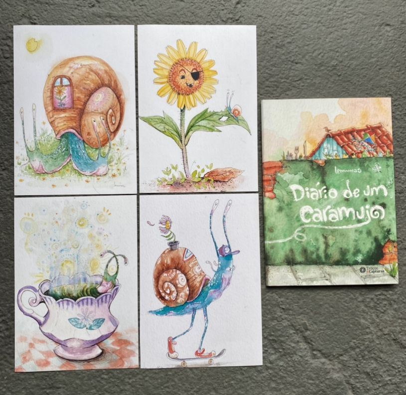 Livro diário de um caramujo + 4 posters (série 2) em papel couchê fosco 150g. Tamanho A5 (15x21cm).